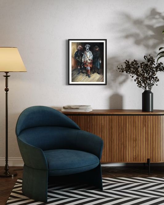 Leon Anderson is a self-taught oil painter from Edinburgh. He is best known for his realistic yet playful paintings of dogs in outfits and cityscapes.